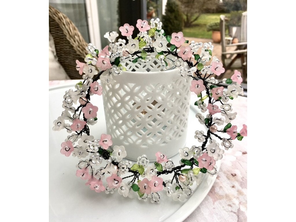 První dvě fotografie ukazují barvu kytiček v tomto balíčku. Fotografie hotových věnečků jsou ilustrativní, aby bylo vidět, jak může hotový věneček vypadat.