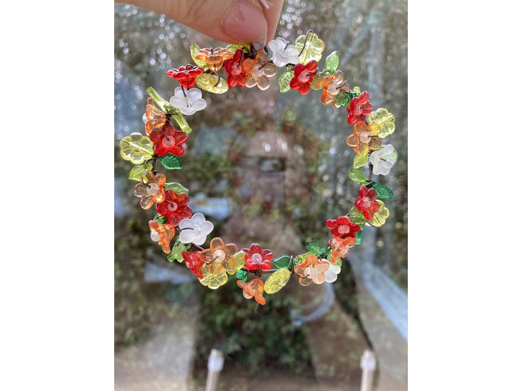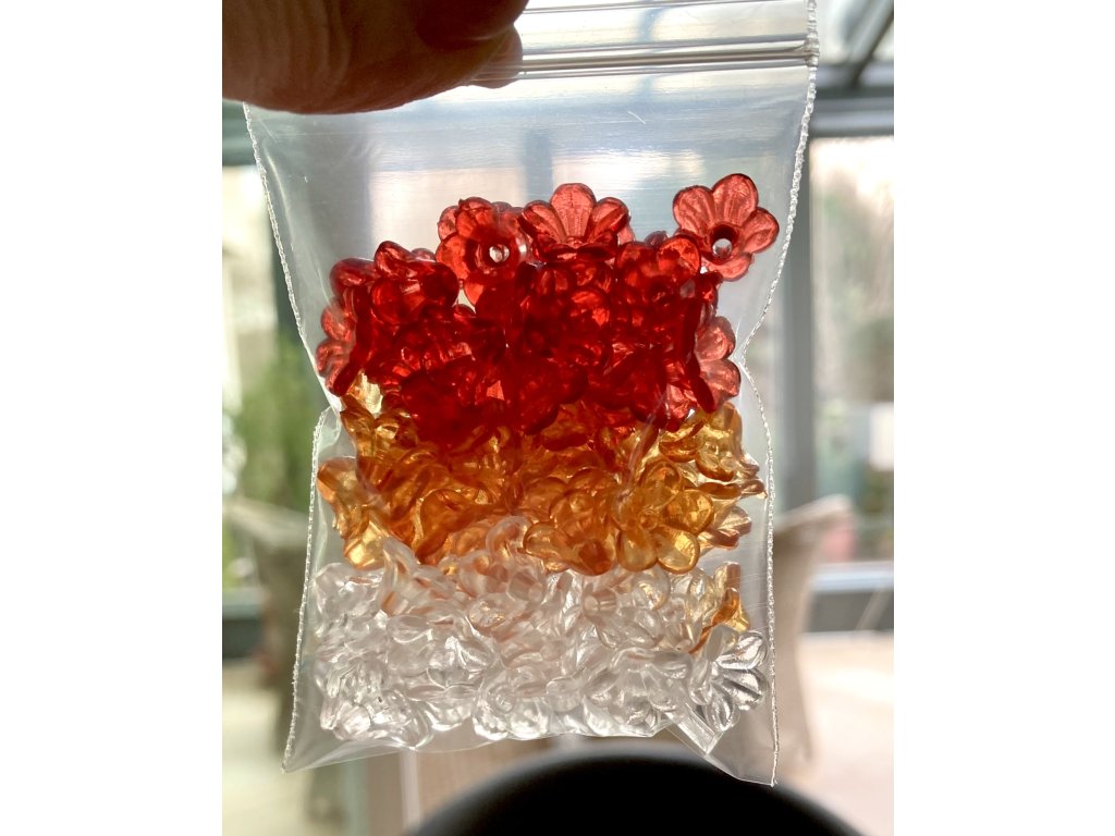 První dvě fotografie ukazují barvu kytiček v tomto balíčku, foto hotových věnečků je ilustrativní, aby bylo vidět, jak může hotový věneček vypadat.